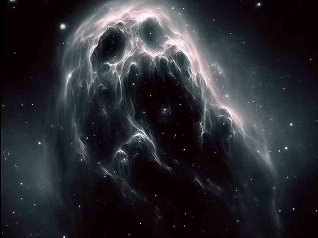 Una imagen artística de AzTECC71 muestra el fantasmal objeto con dos ojos y una gran boca abierta, como si estuviera gritando hacia el abismo.