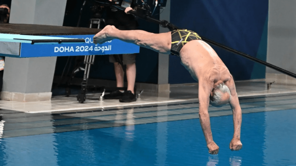 Su clavado de exhibición en el Campeonato Mundial de Natación 2024 en Doha el viernes marcó las dos semanas que faltan para el Campeonato Mundial Masters de Natación, en el que será el competidor de más edad.